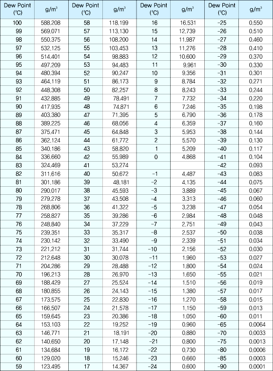 Water vapor chart